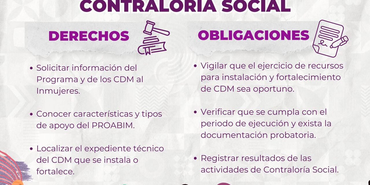 El Instituto de la Mujer para el Estado de Baja California (INMUJER BC), informa que está abierta la convocatoria para la integración de los Comités de Contraloría Social de los Centros de Desarrollo para las Mujeres (CDM) del Programa para el Adelanto, Bienestar e Igualdad de las Mujeres (PROABIM).