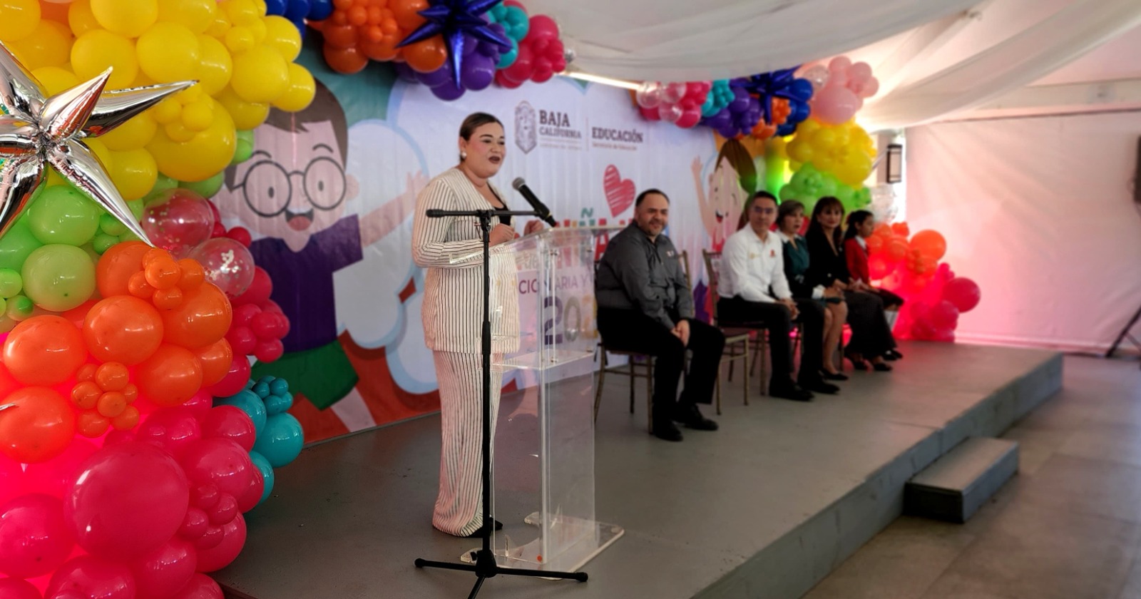La diputada Michelle Tejeda, presidenta de la XXV Legislatura del Congreso del Estado, participó en el evento de presentación de las ponencias de las niñas y los niños que integran el programa “Niñas y Niños Gobernadores y Funcionarios 2025”, organizado por la Secretaría de Educación de Baja California.