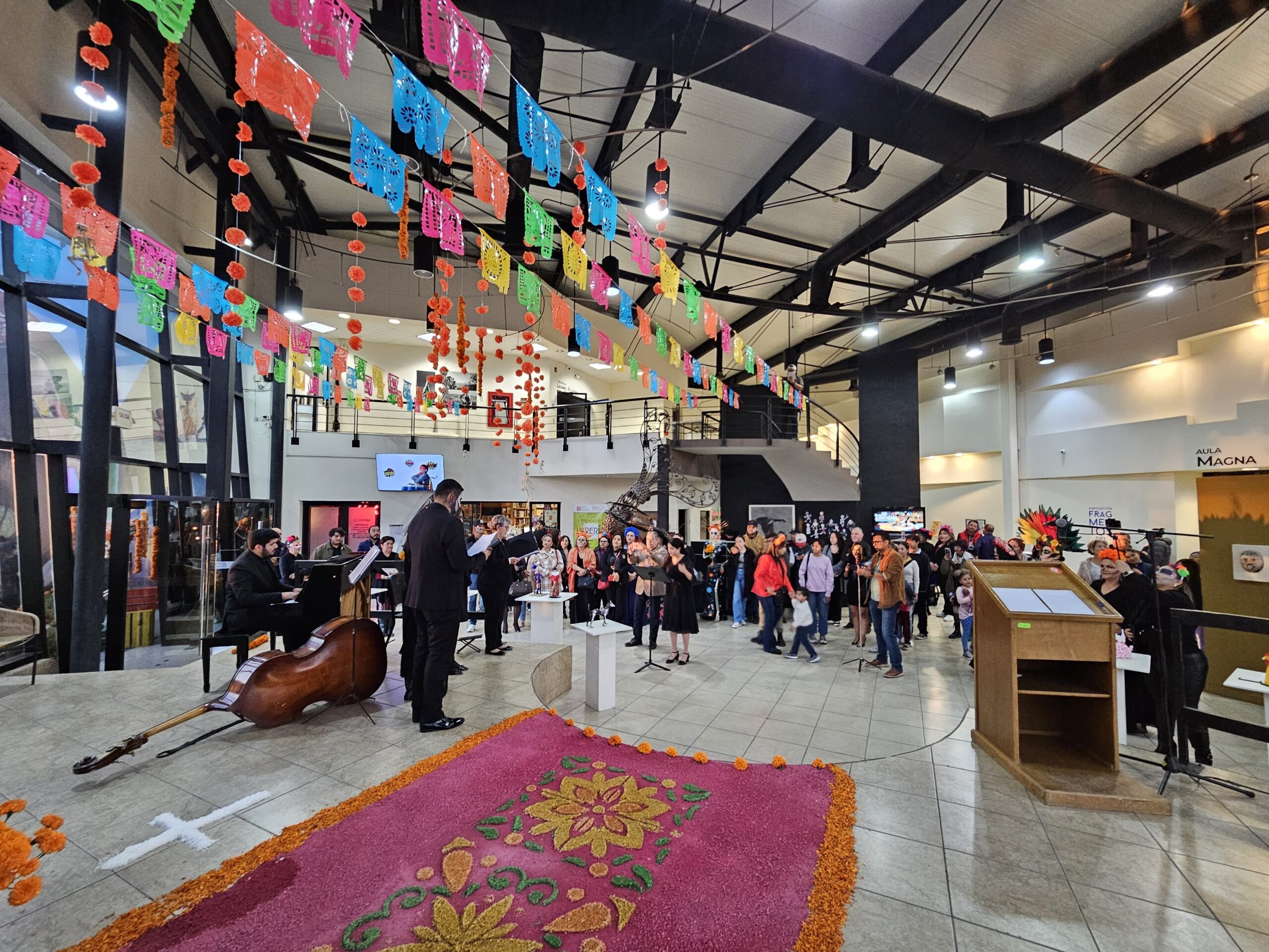 Durante el evento, participaron alumnos y maestros del Coro y Orquesta Sinfónica del Sindicato de Burócratas, así como catrines y catrinas que dieron vida en la actividad cultural.